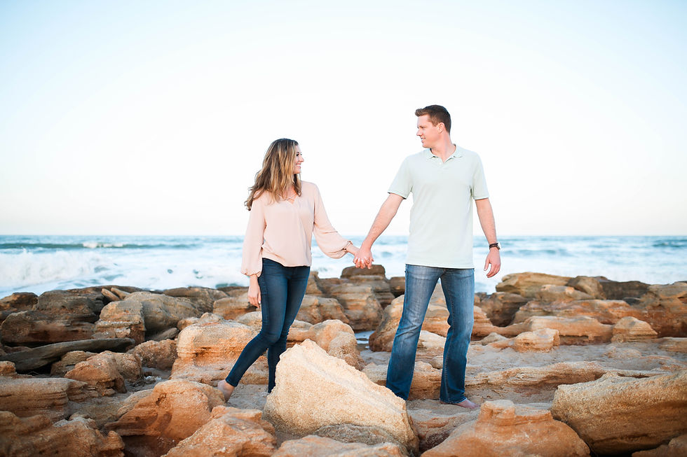Washington Oaks Garden State Park is one place we will never tire of! The beautiful gardens, the gorgeous mossy oaks, and the beach covered in giant rocks is just so enchanting! We are so thankful for such a lovely location to take our couples to. JJ & Katie had been engaged for less than 3 weeks when we met them to capture their engagement photos! JJ, being quite the romantic, planned a very sweet and intimate proposal on the beach complete with a blanket, photographs of them, and of course a stunning diamond ring!