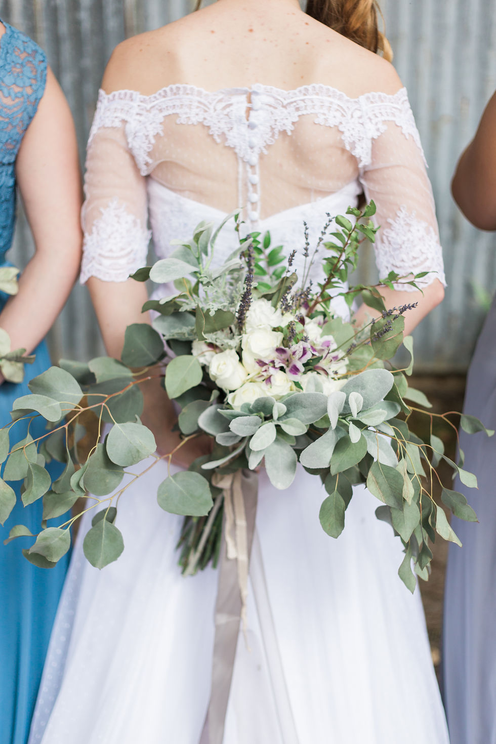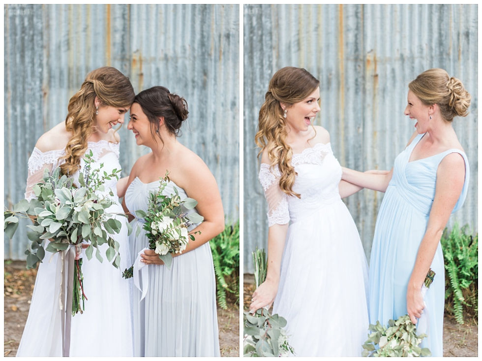 Venue: Twelve Oaks Farm Events Photography: Susannah & Kaley with The Copper Lens Photography Co. Gown: David's Bridal Bride's Bolero: Tulip Bridal Hair: Brandi Patrick at Tousled Hair Salon Make-up: Kristine Mariee Bridal Jewelry: Bridal by Teri Bridal Veil: Bridal’s by Teri Floral Arrangements: DIY Bride's Shoes: Toms Robes: Nela & Company Bridesmaids Dresses: David’s Bridal