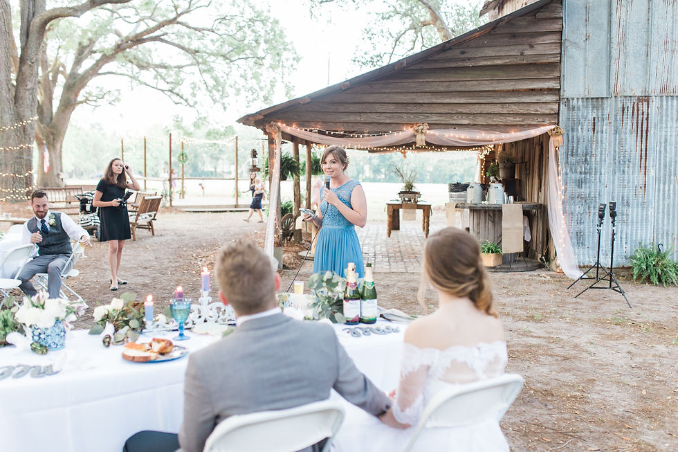 Their wedding took place at the beautiful Twelve Oaks Farms & Events located near Valdosta, Georgia. The venue was decorated with a boho, vintage and rustic style, put together by their dear friends, who did a phenomenal job! It was light, airy and really captivated the couple’s unique and beautiful style. In lieu of table numbers they chose song titles and gave each table a special one!