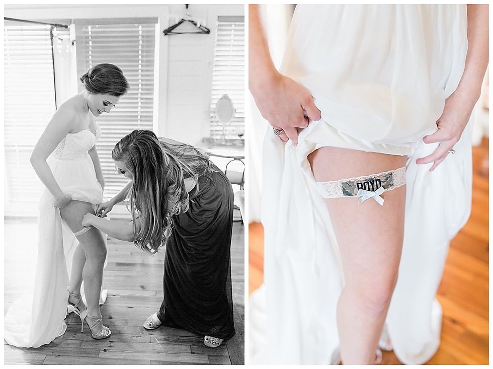 Katelyn had the prettiest of details, all carefully and precisely picked out to reflect their big day. She made the most beautiful bride and it only made sense for all of her details to showcase that. We especially loved her personalized ring box and the military themed garter!