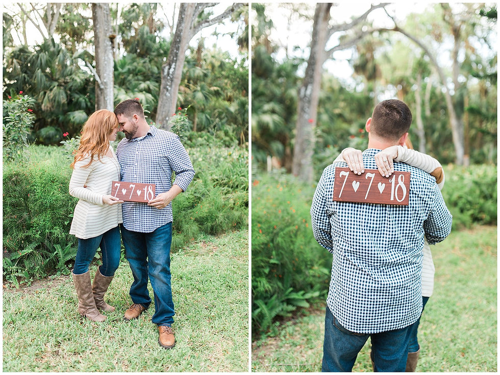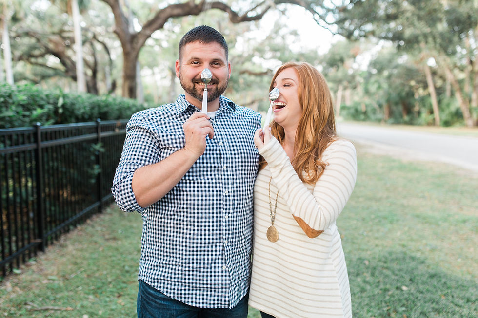 Although we have shared engagement sessions from Washington Oaks once or twice, we just can't help ourselves. The rose garden plus the beautiful Spanish moss hanging off the trees is the ultimate recipe for dreamy, romantic photos! Douglas and Mallorie were the cutest couple and had a few props they brought to really personalize their session.