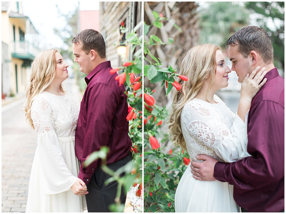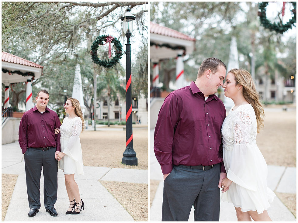For those of you living in Florida or the south, you may relate to this, and to those of you who don't live here let me tell you something. We don't have the winter or fall seasons here, we just call it the holiday season! Starting in October all the way through New Year when it's supposed to be cold and snowy, it's just humid and breezy at most. When Zach and Amber wanted to have their engagement session done in historic St. Augustine with all the holiday decor and beautiful lights how could we say no? As you can tell by the photos it may be decorated like winter, but it sure was a sunny session we loved!